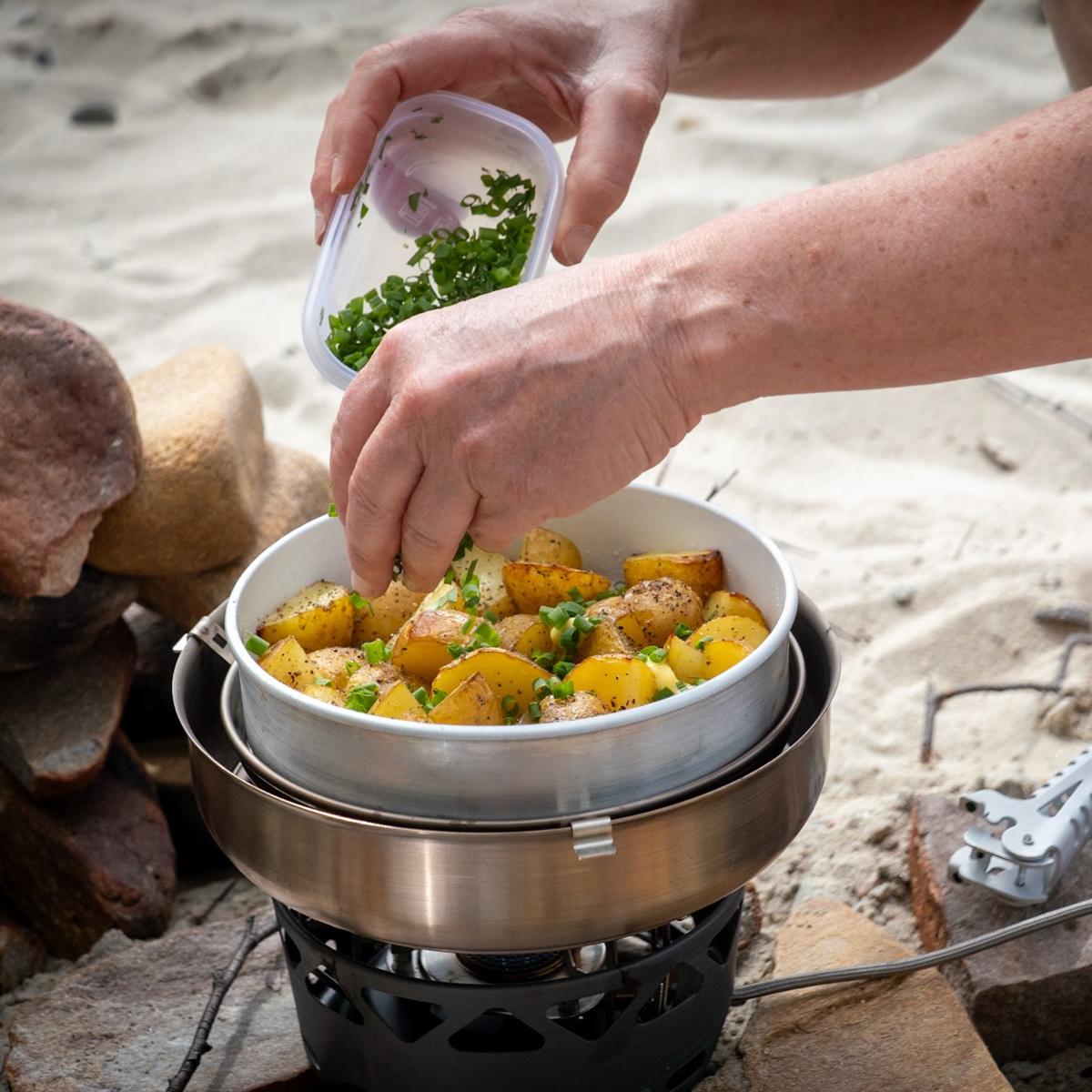 Now you can bake a perfect sponge cake, whip up a delicious casserole, gratin a mushroom toast, bake a pizza, or prepare up to one kilogram of fish or meat – all with just your camping stove and HAJKA.