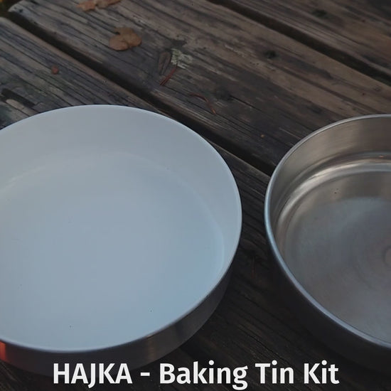 The larger coated baking tin was made due to a misunderstanding with the factory, where an old mould was used. 100 of them were made and are now being sold as a larger pan. It works great as a frying pan or as a larger baking tin in the Hajka. Note that it does not fit in the stainless plate, but can be used directly on the heat deflector.