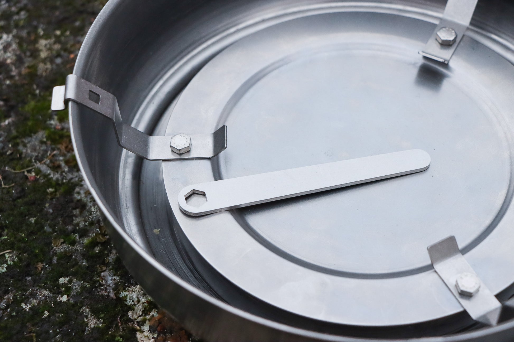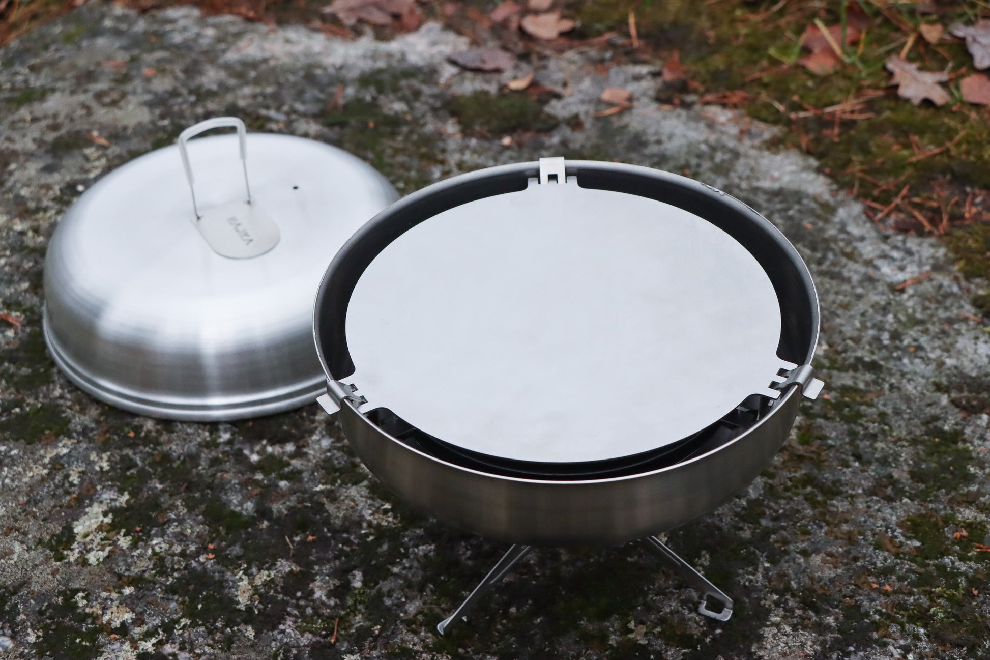 The HAJKA oven is compatible with fixed-mounted gas stoves used in caravans, motorhomes, and boats, as well as standalone camping gas stoves. The bottom of the oven also has a groove that fits perfectly on the Trangia (both large and small models). It can also be used on embers and with alcohol/stove burners.