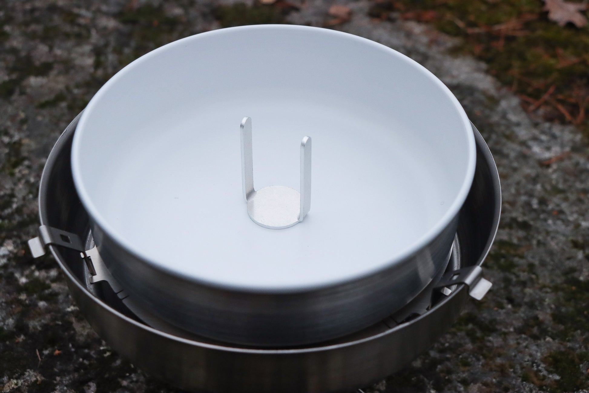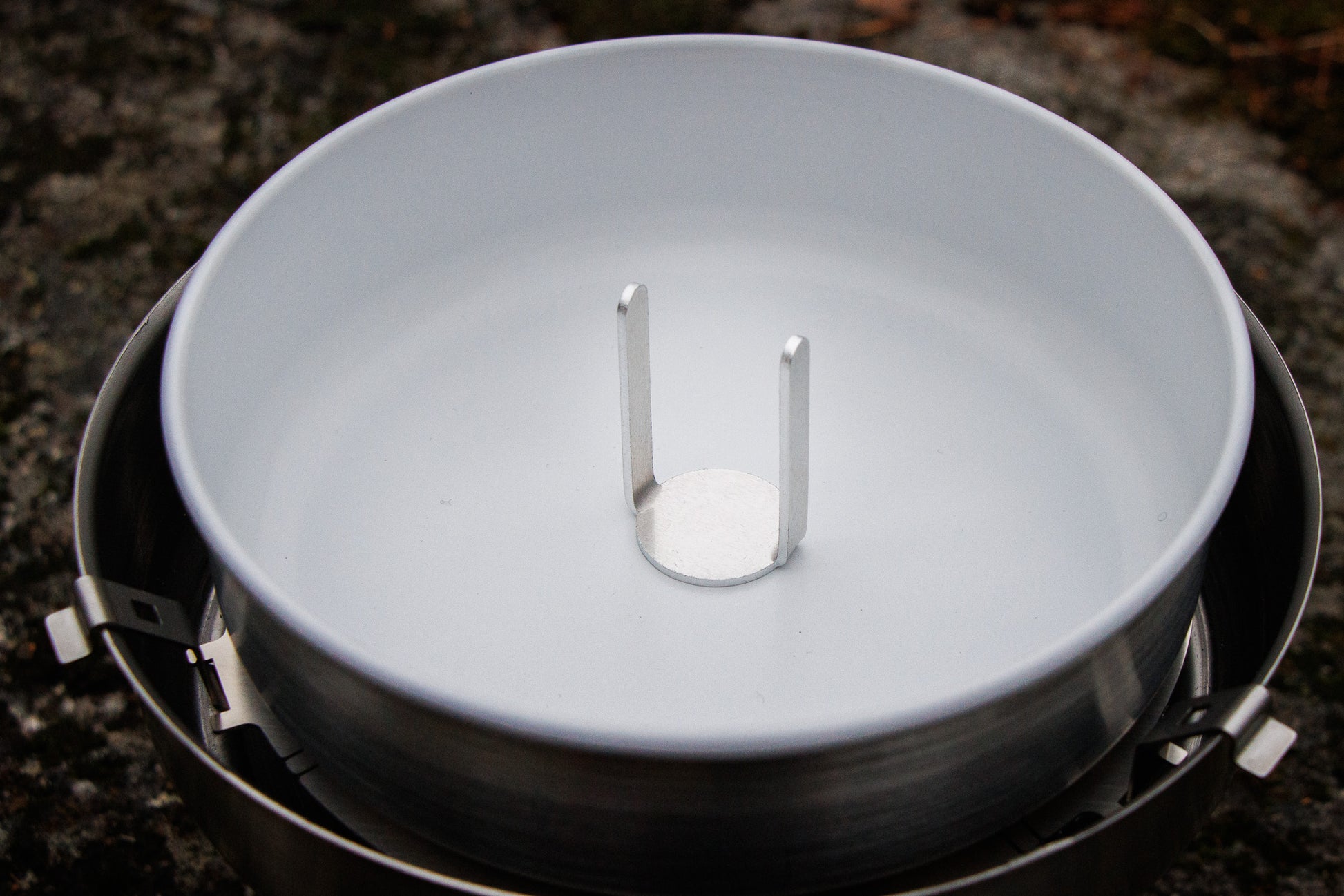 The heat distributor can be used in pairs for even shorter baking; in the image, the stainless and aluminium variants are shown.